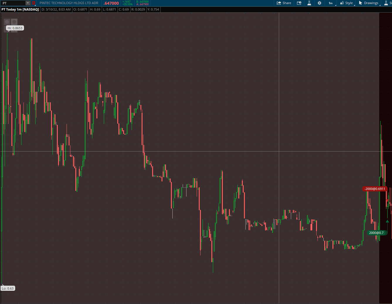 Bot on low tier panic off small morning spiker. Not a clean long term chart, just some beater stock up a good bit. Not the best trade. Bought right on the bottom but sold too quick. Meh. Would have made as much as I lost, at best. Just shaking off the trading nervousness. Not many clean supernovas lately. CEI is panicking now but it's too algorithmic looking. 1 day trade left so I will be looking to get into some FGD overnights with all this energy sector hype.
