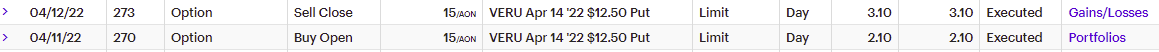 VERU spiked on news so I purchased PUT options at the end of the gap up day expecting a fall the next day. The stock increased further after my purchase and I missed some earnings potential based on an early entry point. My chart states the stock should fall a little more, but didnt want to have another overnight hold, so I sold at end of day.