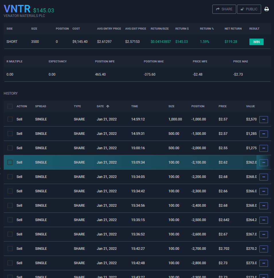 Was extended a lot from VWAP. There was nothing out there to trade that had good odds, however this had good odds that it would come down because it was an analyst downgrade with a PT of 2.95 which would be extremely generous to go to. However, I am prepared to add as it goes higher if for some reason it hits the price target.