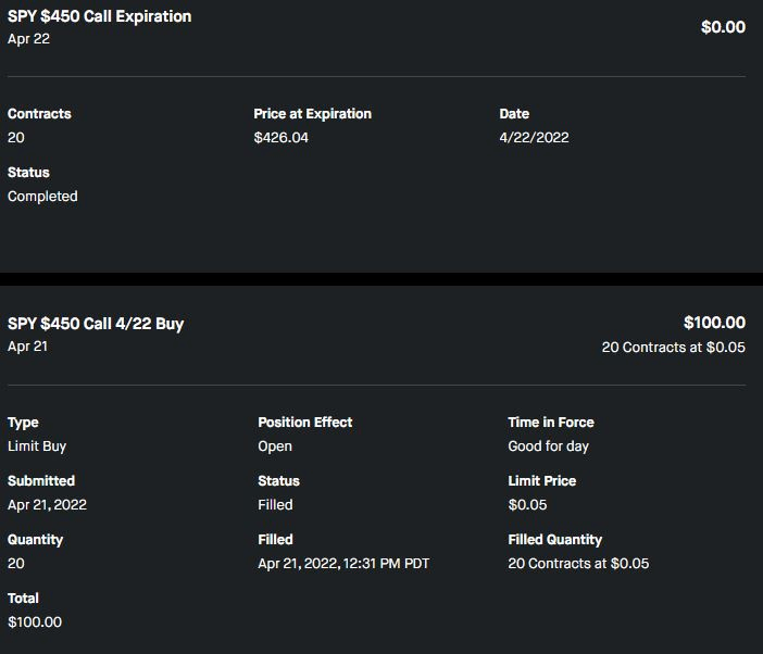 It had been a while since I took a trade, so I was really wanting to trade something; anything really. So after a massive red day in SPY, I decided to make my first loto play...all I can say is that was dumb, Dumb, DUMB! Thought it may bounce and implied volatility might increase on expiration day. I was very wrong. Won't do that again, even if I'm only risking $100.