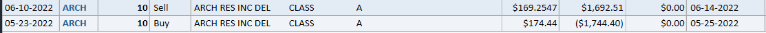 | Entry | 5/23/2022 | 174.44 |