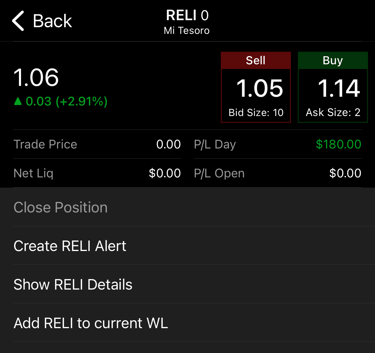 Early morning spike (hi 1.35), bought the intraday dip at 1.08 with no upward momentum for a good 3 hours. Hoping it will bounce back and did set a sell limit at 1.1 for a small profit….sure thing, it bounced back 5mins before market close. In fact it reached to 1.26…..feeling frustrated right now. What I’ve learned today is the importance of chart patterns because the information you get is abundant. (HINT: it has history of bouncing back prior to market close) which I didn’t trust! SMH