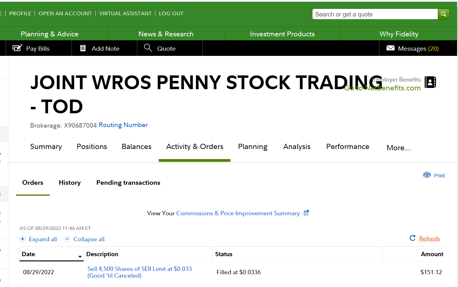 SUPER SALE STRATEGY per my 2/27/21 Profitly blogpost. Dip bought 8/12 8:30 $0.04 1.5k shares 60% off 8/9 $0.099. Price kept falling so added 8/16 8:44 $0.025 3k shares for 4.5k shares total at $0.03 avg. Price hit 8/29 8:40 $0.038, pulled back, & hit 8:48 $0.0379. I recognized the failed b/o but FAILED TO SHOOT A 20%+ WINNER DUE TO MY GREED WEAKNESS ARGH! Got out 10:23 $0.0336 to preserve my 10%+ win. Very undisciplined!