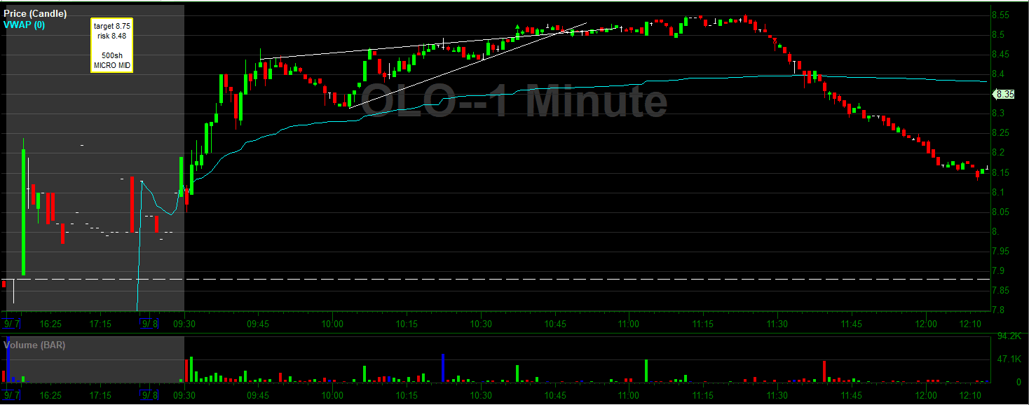 Good triangle structure consolidation daily intraday range key levels and estimations volume price action power ands staying power. Applied ''Target level or Risk level ONLY''. Not modifying them. Did not work, Cut. Next. Also, had entry at .53 but wanted it at .51 and risk was .48 and had slippage. Happens. Next.