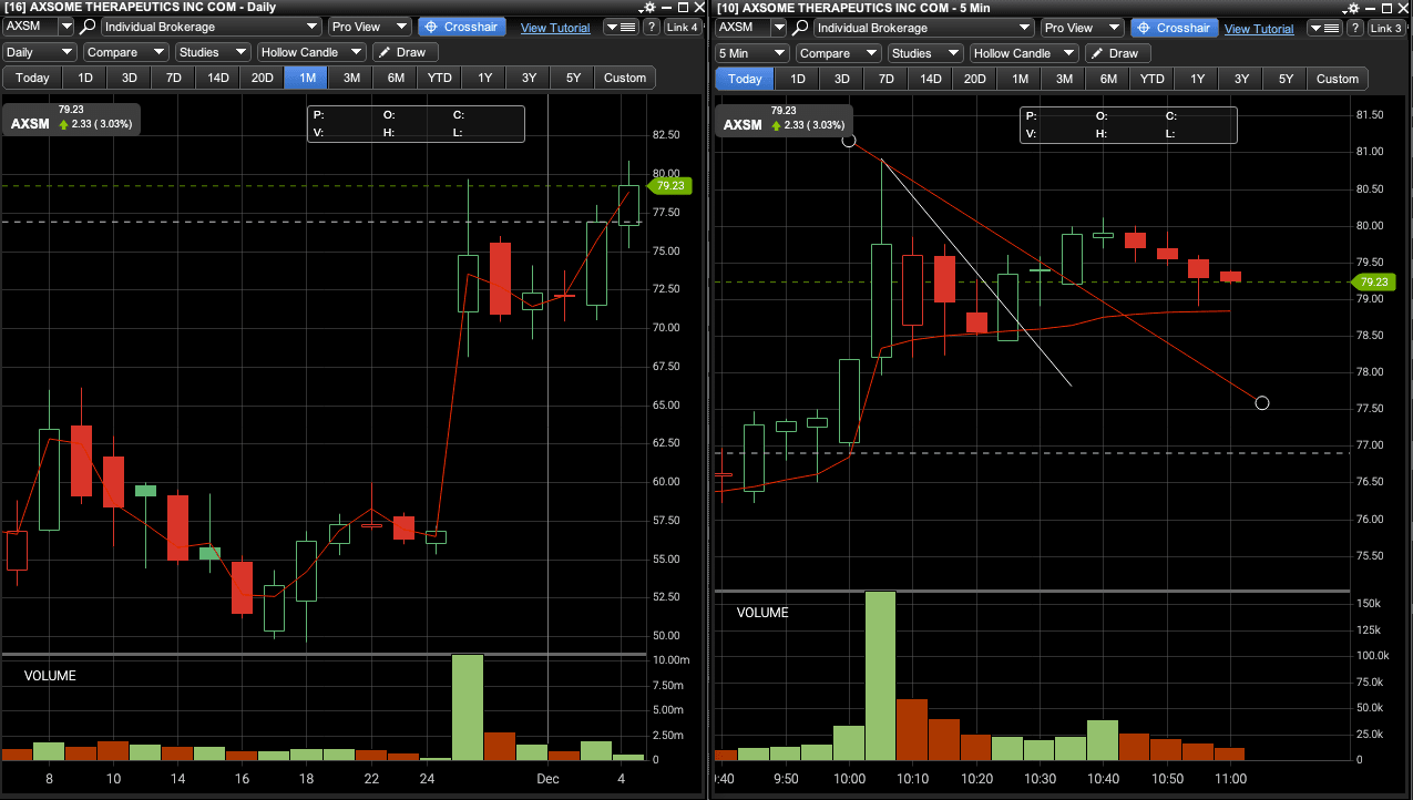 Since i got shook out on the fake VWAP crack i re enter as it went to test the true BO level again at 79.68 but got stuffed at 80.00 and had 3 5 minute candles of down trend so cut my losses again. SHit! i Need to take the first move on these. But so many tie it happens on the 2 and third try. ARGH! Well at least this was the daily chart setup i was looking for but juts tricked me twice