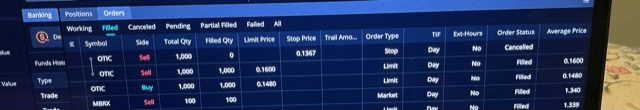 I saw the volume on the Level 2 and Time and Sales it look like it was building a nice run up with the 1m,5m, and hour chart. Also, saw OTIC mention on my Webull news that this stock was gaining momentum and I jump on the bandwagon for a quick in and out. I made sure to have a stop loss in place at .0137 and a take profit at .0160. so I would break Tim's Rule # 1 cut loses quickly :)