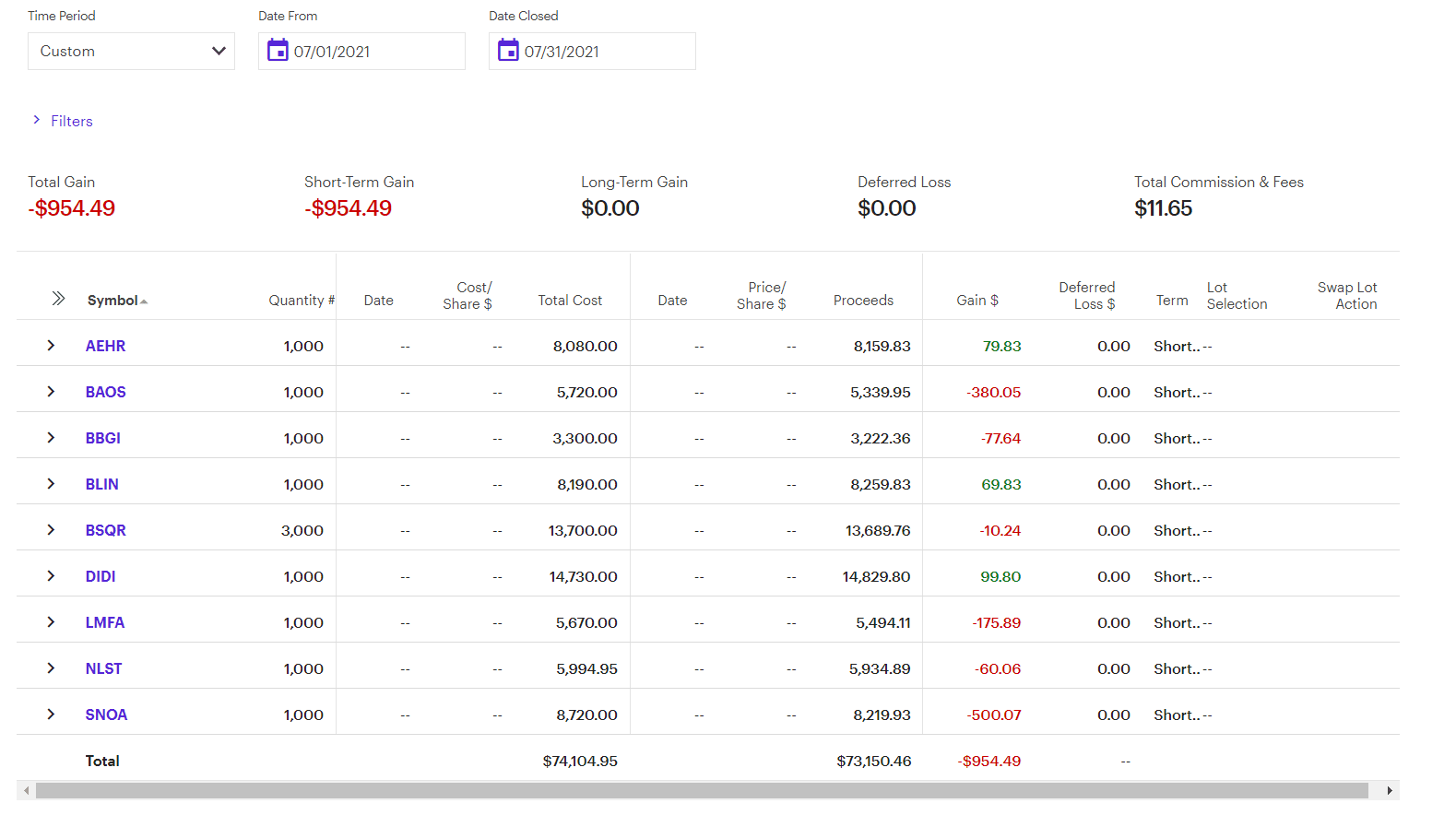 -$955 Loss
