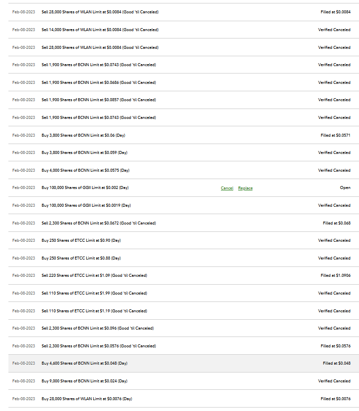 I got in this trade because it was in the OTC Top 5 Biggest % Gainers with Volume on 2/3 & a 2-time former runner since 11/14/22. Dip bought 12:01 $0.0076 30% off 2/7 $0.0108 HOD using a pre-set Limit Buy set pre-market. When a 450k wall appeared on the Ask at $0.0085 at 12:15, I immediately lowered my profit expectations, put on the Ask at $0.0084 for the 10% win, & Fidelity got me out at 13:28.
