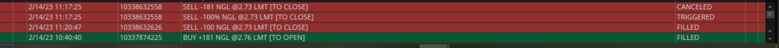 Exit comments: NGL didn't move the way I was expecting. It was very choppy for me so decided sell for a small 1% loss.