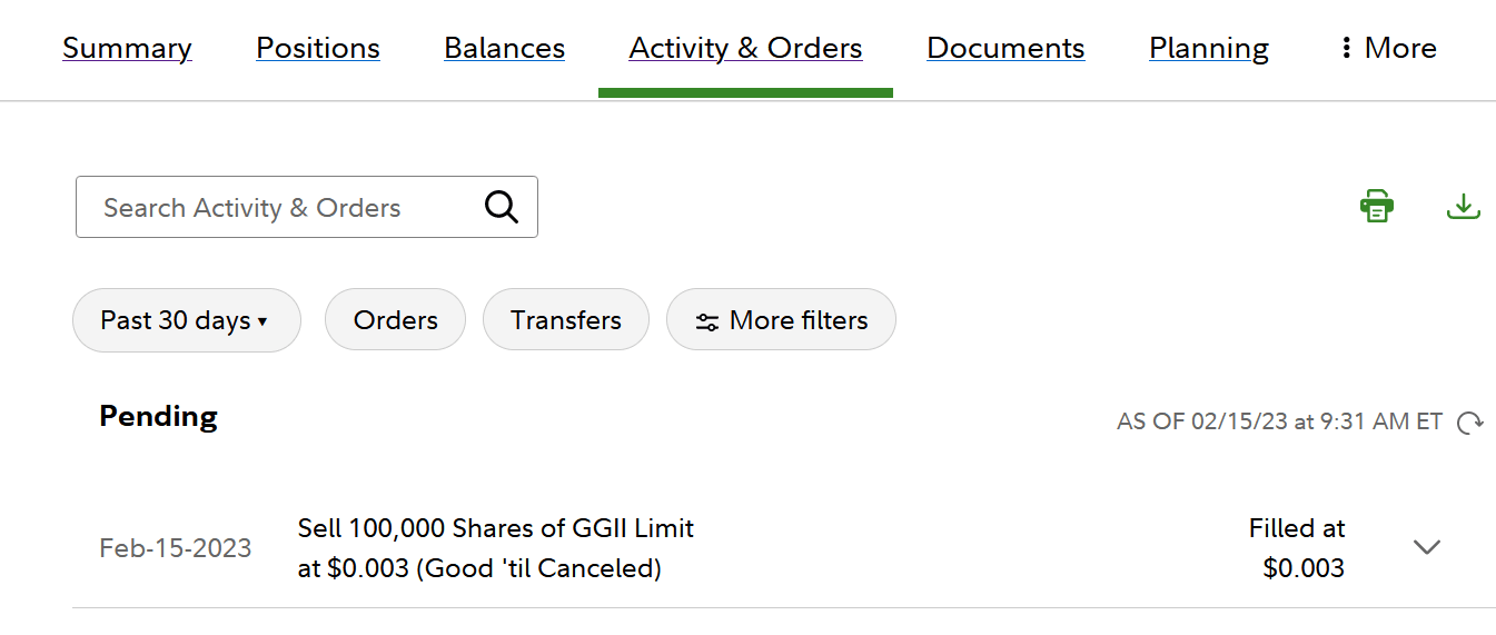 I got in this trade because it was OTC Top 2 Big % Gainers with Volume 2/6 + 2/9 & a 12-time former runner since 6/8/21. Dip bought 2/13 9:33 $0.0025 14% off 8:30 $0.0029 at the 5-day support level. Price closed 2/14 $0.0028 & 2/15 pre-market Bid was $0.0029 & Ask $0.0033 so when price hit $0.0033 at 8:30 & immediately pulled back, I got out 8:31 $0.003 to preserve my 20% win.