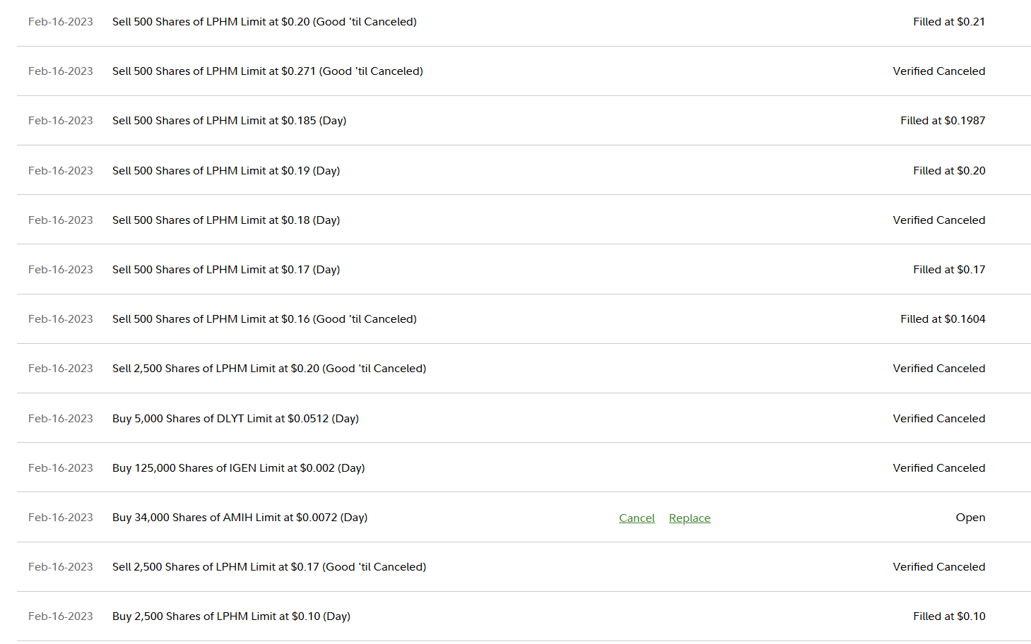 I got in this trade after Sykes mentioned it in Chat as it wasn't on my Watch List. It had spiked to OTC #1 Biggest % Gainer on H2 EV PR. Dip bought 8:44 $0.10 at the LOD which is a strategy I do on spikers if I can get it. With low volume trades I sneak out in pieces with <1k share size hidden inside the spread. I started 9:56 $0.16 & ended 11:16 $0.21. Fidelity says I got $0.21 on the last 500 shares but it wasn't on the L1 tape so I think I got a mixture of $0.21 & $0.236. Will update.