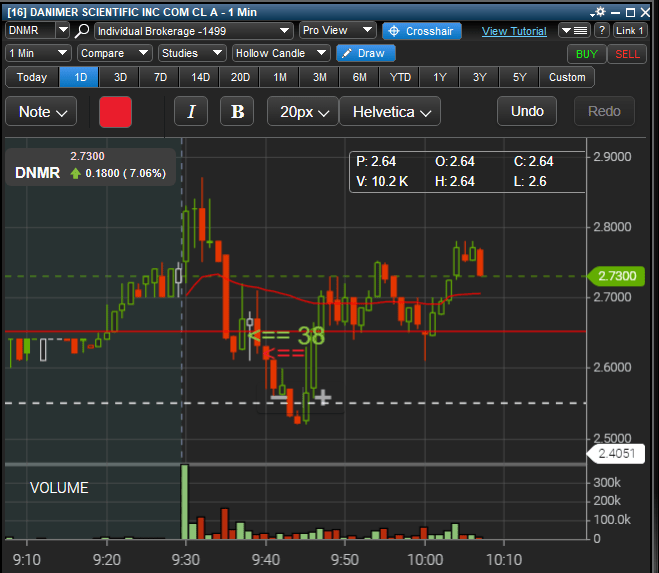 Bought after watching it break Friday's double top, and the plan was to wait and see how it played out after it broke Friday's highs and to see if it would come back down and bounce off that point, so I bought when it hit that point and it bounced very small but ended up breaking down and bouncing at a lower point (2.52)