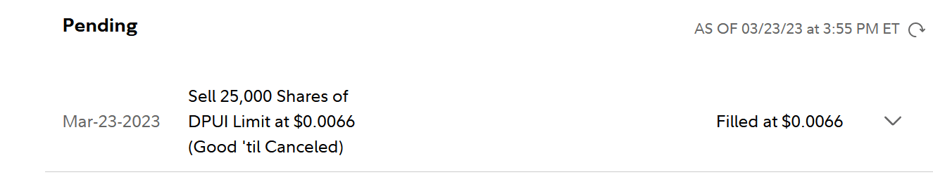 SUPER SALE STRATEGY per my 2/27/21 Profitly blogpost. Dip bought 3/17 8:51 $0.006 50% off 3/16 $0.0119 HOD. Price went sideways and volume faded away. Price hit $0.0068 on 3/20 low volume but I thought it could go more. Price hit 3/23 14:25 $0.0067 on low volume can't even seem to challenge 3/20 $0.0068 so I got out 14:55 $0.0066.