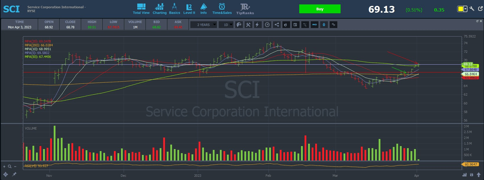 Entry comments: Swing. Another attempt at swing this one. Earnings isn't until May 17th, but been trending up since 64's & I've been watching it. Confident it'll do good on earnings again because death is booming lately. Found out it dumped because insiders sold a lot. Will add by 5's until 20-25 are owned. 1st was 5@67.05, risk 66, TGT 69-70 again.