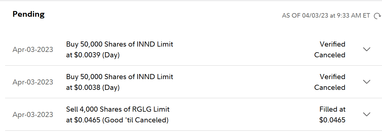I got in this trade because it was the OTC #1 Biggest % Gainer with Volume 3/24 + 3/27 & is now trading in a channel but with low volume. Dip bought 3/31 13:32 $0.0426 380 shares & 14:02 $0.0425 4,620 shares [using a pre-set Limit Buy at $0.0426] 10% off 8:32 $0.0475 HOD. The volume is low now but is trading between $0.04-$0.05 so I just wanted 10%. Got out 3/31 14:52 $0.046 1k shares & 4/3 8:31 $0.0465 4k shares.