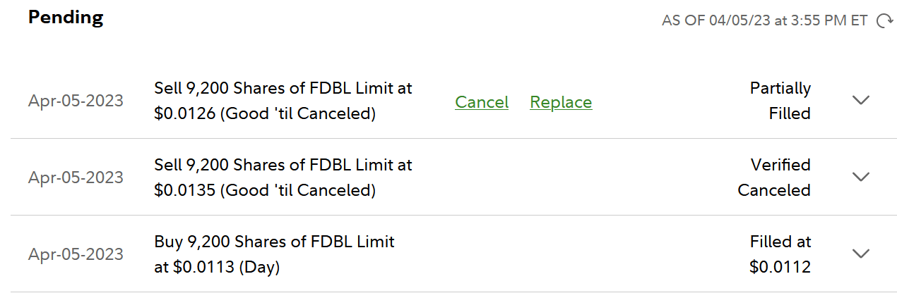 I got in this trade for the third time today because the first two trades I made 10.7% avg profits & it's trading in a range that I can play my inside-the-spread with small size play; spread $0.0112-$0.0136 = 21% so anything >10% is exploitable with this play as long as you’re under 10k shares… fun to do! Got in 4/5 14:39 $0.0112 9.2k. Got out 4/5 14:54 $0.0136 7.497k & 4/6 9:05 $0.0119 1.703k.