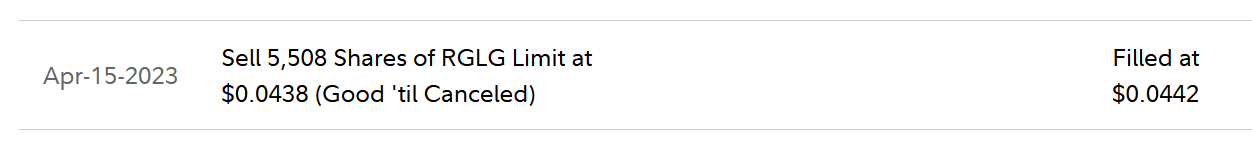 I got in this trade because I had four successful trades 3/24-4/3 with 27% avg profit wins & it is a 2-time former runner since 3/24. Dip bought 4/3 Fidelity gave me 8:48 $0.043 768 + 8:52 $0.0429 3,832 12% off 8:31 $0.0487 HOD. Price fell so added 11:03 $0.038 6,708 shares to get $0.04 avg position. I set Limit Sell for 30% win & Fidelity got me out 4/11 12:22 $0.052 5.8k. I lowered my Limit Sell for 10% win on remaining & Fidelity got me out 5/16 8:43 $0.04416 avg. Price is $0.055 at 9:02