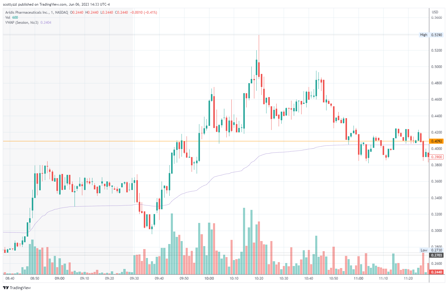 $0.38 starter ~9:55am, believing it is going up another leg and consolidating. breaks through next leg up. $0.43 2nd position ~10:12am while it consolidates again. breaks through another leg. sell for 20% profit. the key again was moving on morning plays that are top gainers in Oracle, breaking through to new highs convincingly. grab meat while play is hot and in play.