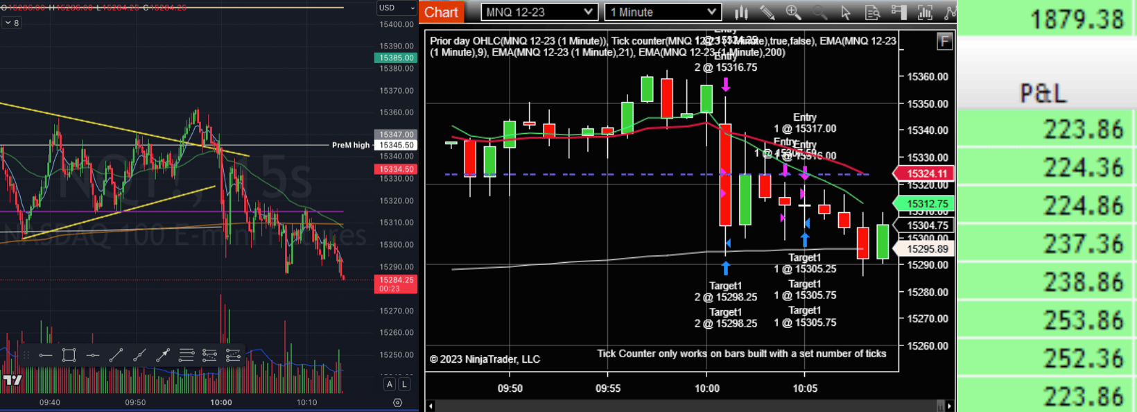 Nice 5 min trading day. Waited for the news at 10, went short 4 MNQ contracts when it broke structure do the downside, then profited around 50 ticks, then took a second trade, 3 MNQ contracts for another $50. Total on 7 cons roughly 70 ticks. Happy with today's trades. It's Friday so gonna stop now while I'm green.