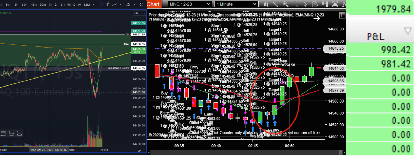 After open, was trying to go long, then short, was crazy. Was down $1200. Then decided to go long at around pre-market low. Went in with bigger size as it was confirming. Def exited too early, but that's ok. The red circle was my last trade, largest winning trade at the end. Can see I really exited too early but that's ok.