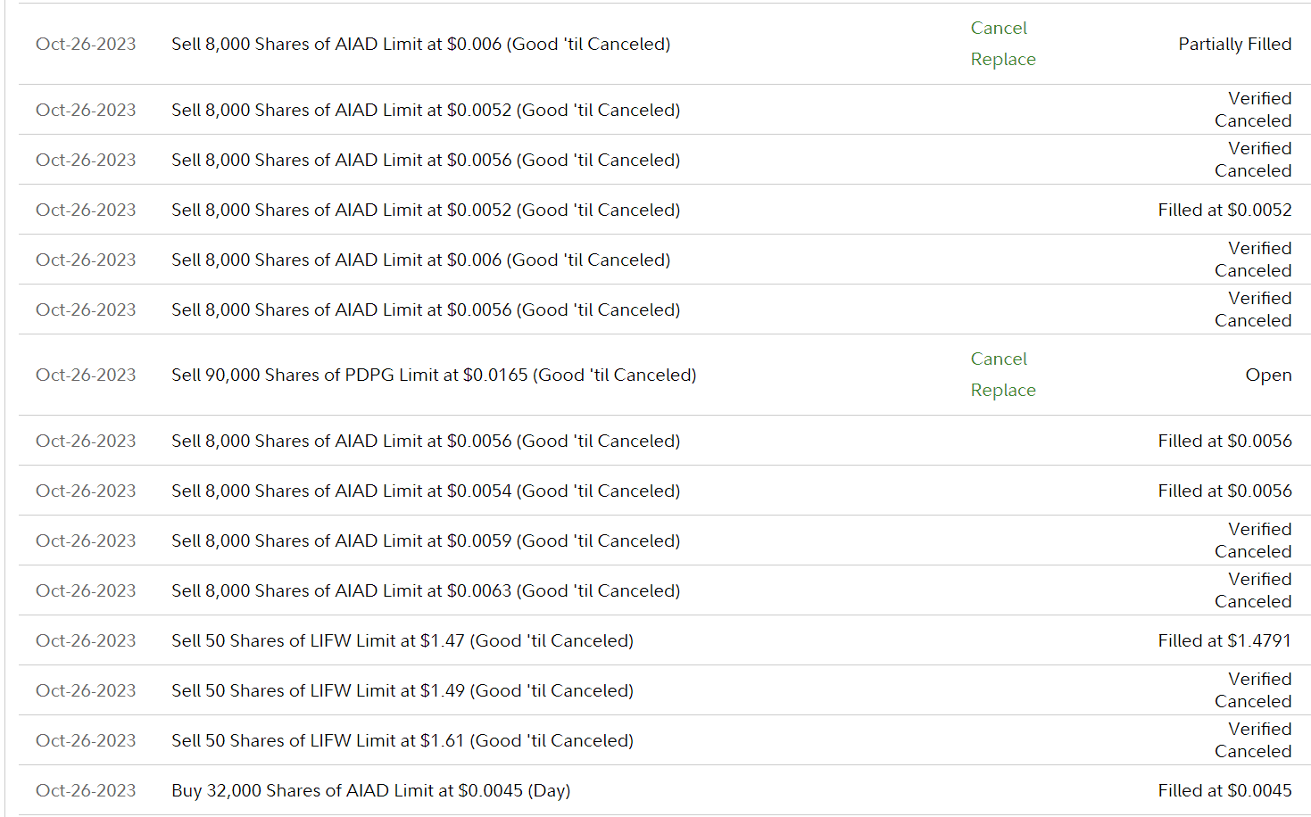 I got in this trade because it's a 13-time former runner since 10/25/21. The key to OTC trading in a dead OTC market is to focus on former runners. Dip bought 10/26 13:00 $0.0045 32k 33% off 11:33 $0.0067. This is a low volume ticker today so key is to use small size & even smaller exit sizes. Immediately set 4 8k exits $0.0052-$0.006 & Fidelity got me out 14:01 $0.0056 5k, 14:24 $0.0056 11k, 14:43 $0.0052 8k, 14:56 $0.006 2k, & 10/27 8:30 $0.006 6k.