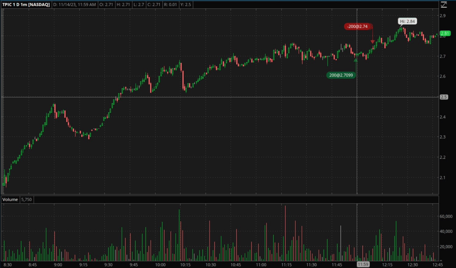 Watching L2, T&S, and a 1 min chart from about 11AM to 12:15. It felt really choppy, but I was just trying to get a feel for what order sizes look like and how they affect the movement and chart of the stock. About an hour into it watching it, I wanted to see if I could make a good judgement on when to enter and exit based on the data. All things considered, the stock was WAY up and could have crashed at any moment, but I definitely would have exited somewhere between 2.66 and 2.68 if so.