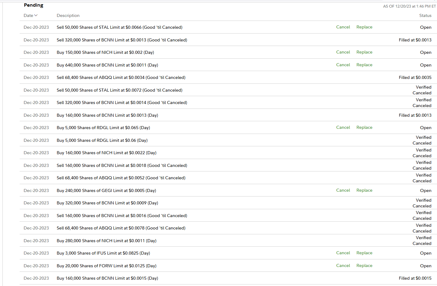 SUPER SALE STRATEGY per my 2/27/21 Profitly blogpost. Dip bought 8:35 $0.0015 160k 52% off 12/15 $0.0031 HOD. Price kept falling so added 11:04 $0.0013 160k. Price bottomed at $0.0012 but then a thick wall appeared on the Ask 4.6M+ $0.0014 & 5M $0.0015. With small Bid support, I decided it was time to move on and got out 12:43 $0.0013.