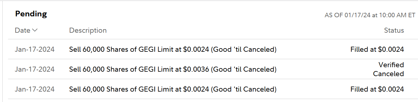 I got in this trade because it's a 12-time former runner since 7/14/22 & I had a successful trade on 7/14 on this ticker after 8th red day on a Friday & this is identical in that way. Dip bought 7/28/23 9:13 $0.003 60k 16% off $0.0036 HOD. Price fell so added 9/25 14:04 $0.001 24.95k & 12/11 13:44 $0.001 35.05k. Price hit 1/16 & 1/17 $0.0025 but couldn't go further so I sold 1/17 $0.0024 8:52/8:59.