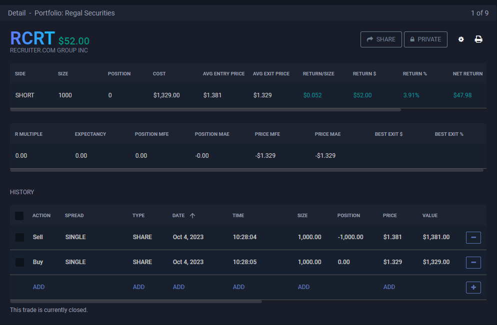 RCRTShort Stock
