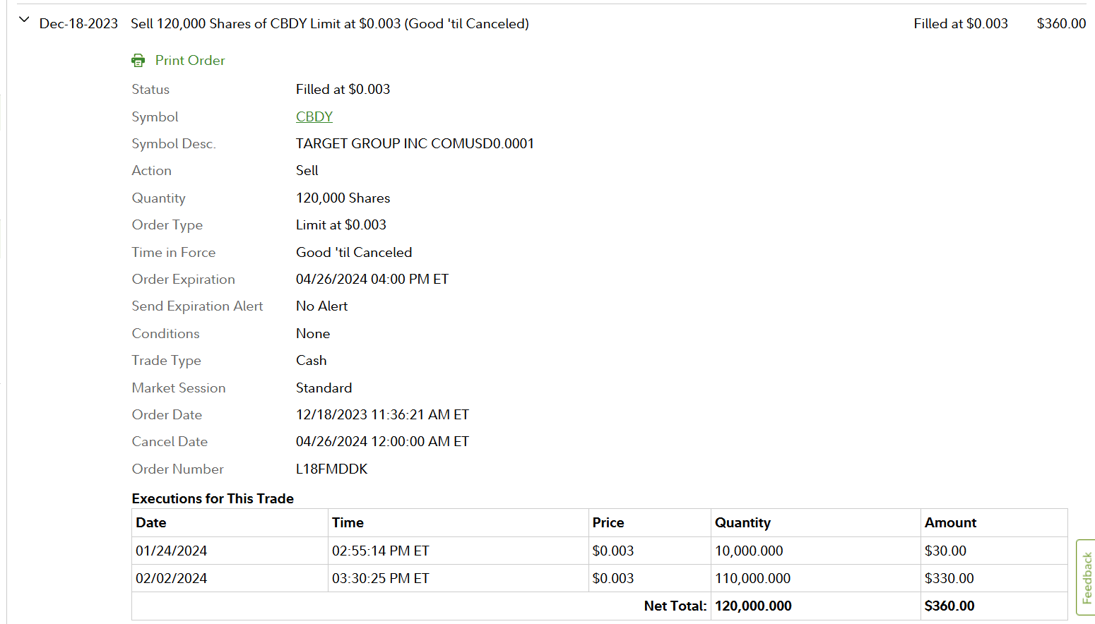 I got in this trade because it's one of my favorite LOW VOLUME tickers with a pattern. See the 1-year chart to understand why entries around $0.002 work. Dip bought 10/31 13:07 $0.0025 60k & 13:12 $0.0015 60k. Now for the patience... My two previous trades: 1/10-6/21 $0.00356-$0.00463 30% & 7/14-7/18 $0.0025-$0.0035 40%. Fidelity got me out of this trade at $0.003 1/24 10k & 2/2 14:30. Will look to re-buy under $0.002 & wait again. NOT SYKES APPROVED!