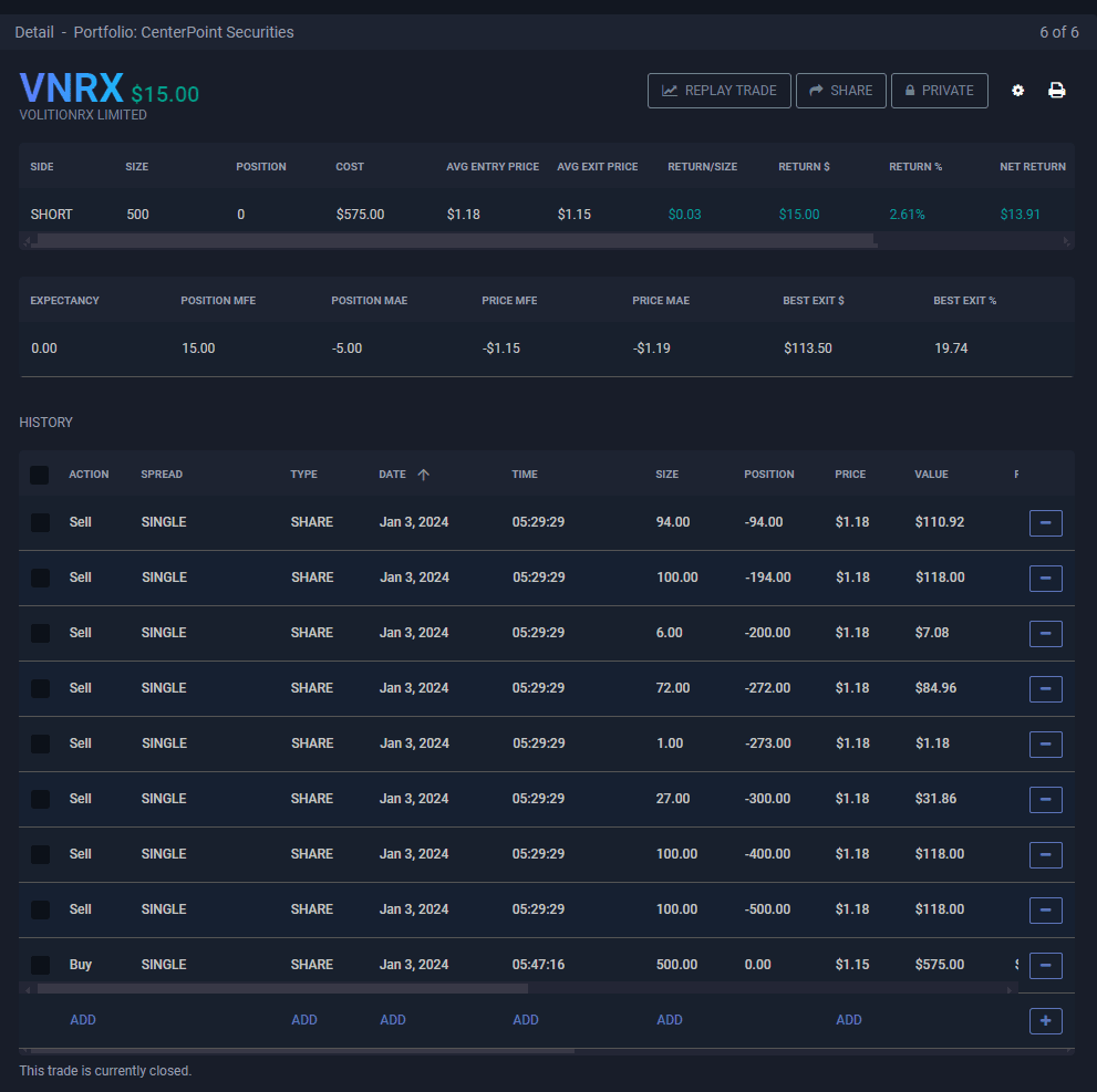 VNRXShort Stock