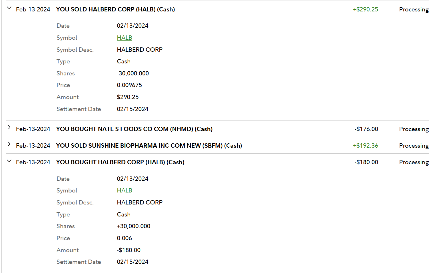 SUPER SALE STRATEGY per my 2/27/21 Profitly blogpost. Dip bought 11:22 $0.006 50% off 2/12 $0.0121 HOD. Price hit 11:45-11:46 $0.0107 before I realized I was in the trade because I was doing house chores! I put on the Ask at $0.0102 which was the opening price for today but volume was low. Finally when I saw a 169k Bidder show at $0.0095, I got out & Fidelity gave me 13:09 $0.0097! I always put in these low bids pre-market for just this price collapse possibility!