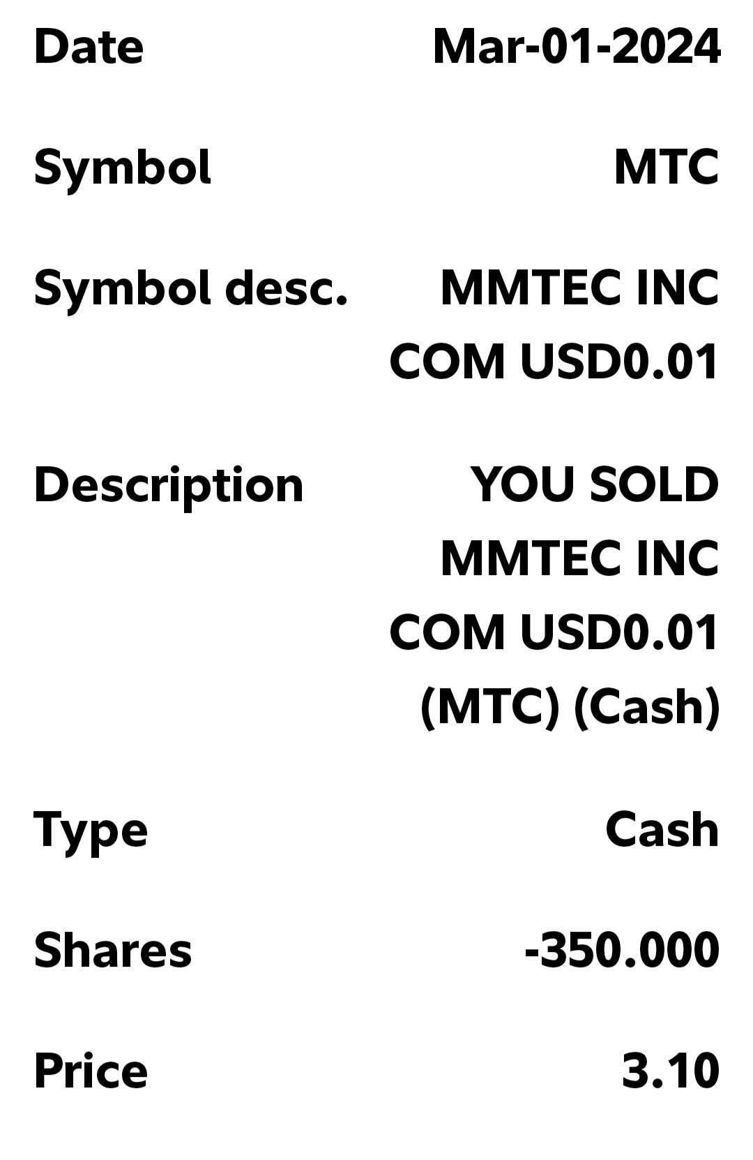 | Exit | 3/1/2024 | 3.10 |