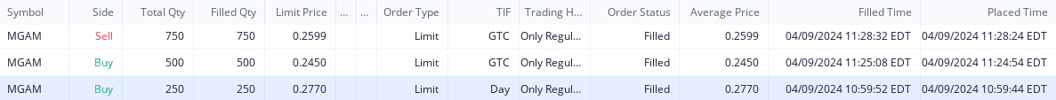 We bought this after it spiked in the morning on a dip hoping it would go back to test the high's. Well it didn't and we should have sold right after we got in but held through another dip is why we bought more. Got out with a small cup of Joe worth of profits. Webull picture posted because it is not compatible here yet.