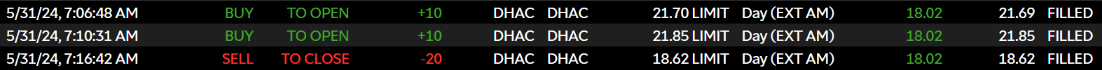 This stock was moving dollars at a time. I tried averaging down once and ended up averaging up it was moving so much. $20 was my stop loss, but my position didn't close quick enough and I ended up with a larger loss than I was wanting. This is why managing your risk with position size is important, especially with speculative trades as this was for me. $63 is recoverable. On to the next one