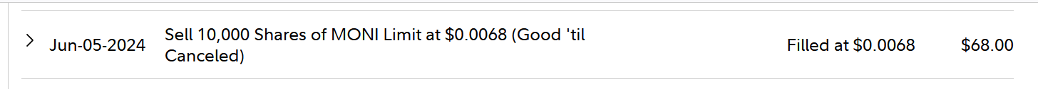 SUPER SALE STRATEGY per my 2/27/21 Profitly blogpost. Dip bought 5/9 11:12 $0.0065 20k 52% off 5/7 $0.0135 HOD. Price became range bound $0.0053-$0.0073 for over 3 weeks. Fidelity got me out 5/21 $0.0072 but for only 10k shares. Today 6/5 I gave up, lowered my expectations, & got other 10k out 13:38 $0.0068. Price popped after my exit of course to 13:54 $0.0071 argh!