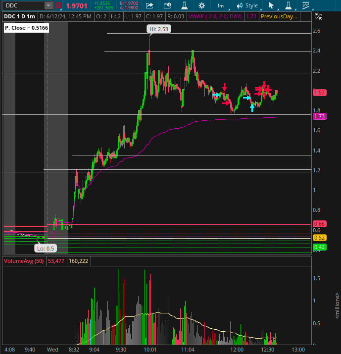 I blundered the 1.92 entry. I was setting an entry for 1.85 but forgot to change it to 1.85. I added at 1.85. My risk was the 1.77 low. I took profit at 1.96. If my first entry wasn't at 1.92, I would've waited a bit longer to 2.00. I took half off at 1.96. Then the other half into the 2.00s as plan. I held the final position for 2.10 but decided to cut at 1.97 since it's midday. I shouldn't have traded