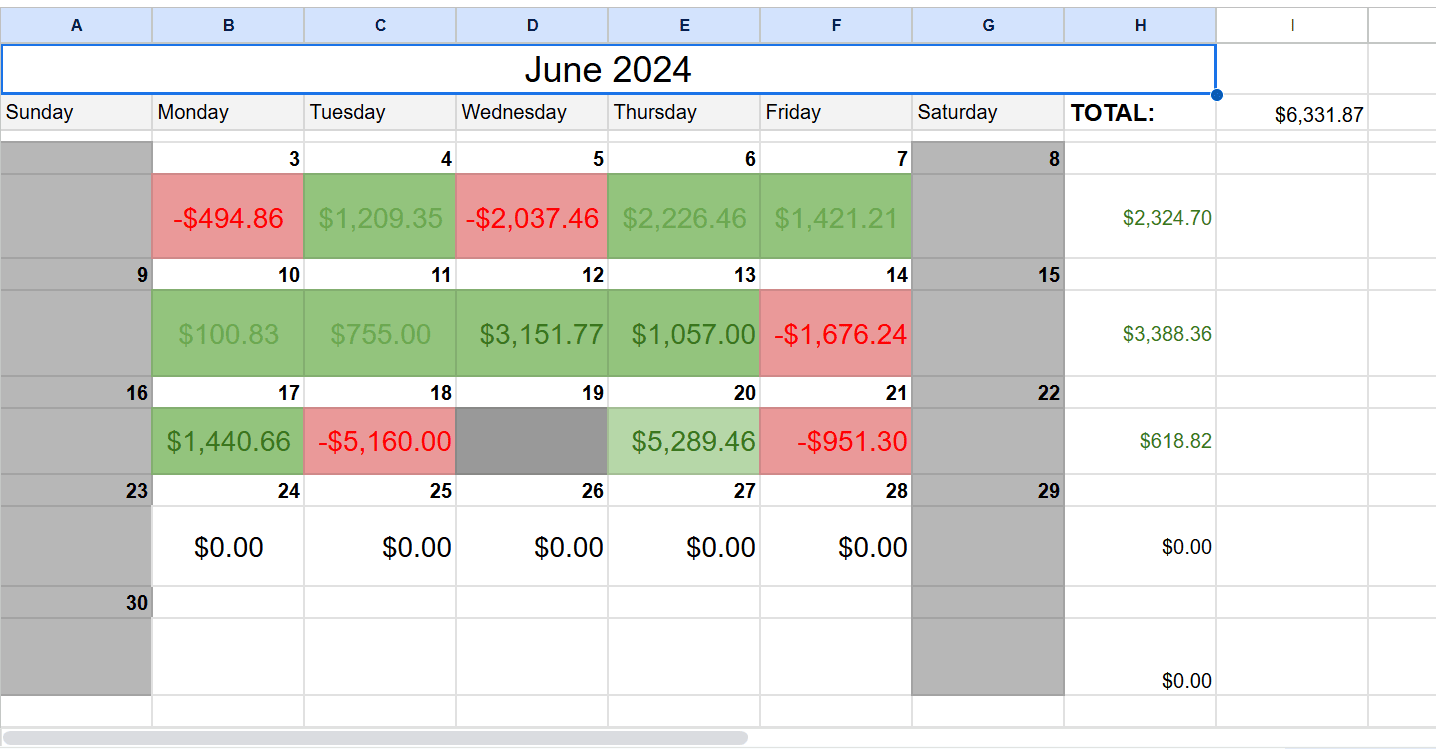 June 2024 Week 3 Got wildly undisciplined towards beginning of week wanting to buy puts on NVDA and not cutting quick enough, but the break in middle of week helped realign my mental fitness. Attacked Apple FRD /DT + news short with puts then got FRD on NVDA for a solid gain. Had a decent dipbuy on ZAPP but got crushed chasing breakout on GRDI into a middle finger candle and then halt down. Another highlight was MBIO afternoon breakout but sold way too soon.