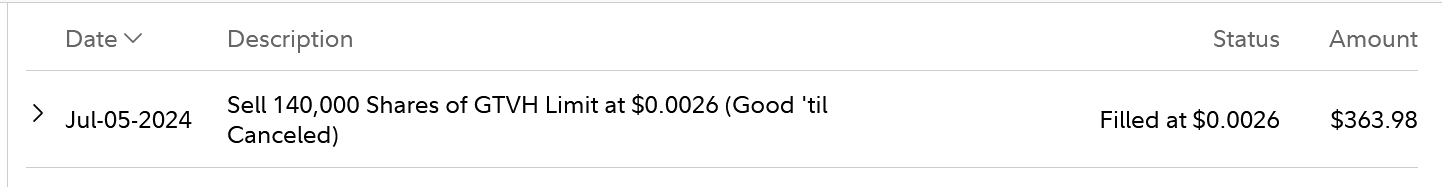 I got in this trade because it was OTC #1 Biggest % Gainer with Volume 6/24 & is an 11-time former runner since 1/24/24. Dip bought 6/27 12:03 $0.0025 70k just above 6/20+6/21 $0.0023 dbl btm support. Set Limit Sell for $0.003 & 905k shares sold there 7/1 10:20/10:46 but not me argh! Added 7/3 8:48 $0.0015 70k. Price hit 7/5 $0.0026 10:14/13:47 dbl top! Lowered my expectations, set my Limit Sell for $0.0026, & Fidelity got me out 14:09.