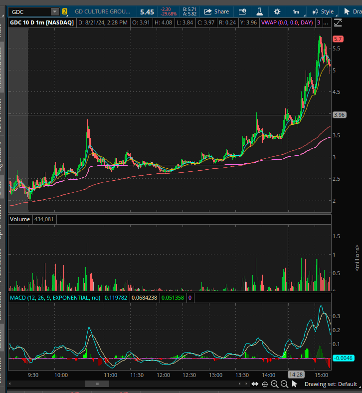 BOUGHT THIS POWER HOUR MOVER FOR THE WHOLE DOLLAR/HOD BREAK OF 4 , BOUGHT IN AT 3.97, SOLD INTO THE 1ST LEG UP OF THE SQUEEZE TO 4.30, GOOD SINGLE TAKEN. WOULD OF KEPT TRADING THE UPWARDS MOMENTUM BUT I HAD NO MONEY LEFT TO TRADE CUZ I WASTED 2 TRADES ON A POOR SETUP PRIOR. A GREAT EXAMPLE OF WHY IT'S IMPORTANT TO PLAY THE BEST PLAYS ONLY AS THIS ONE SQUEEZED TO 5.80