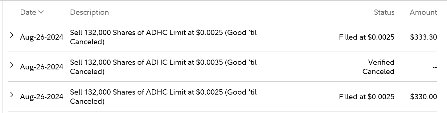 I got in this trade because it's an 11-time former runner since 4/16/21. Dip bought 4/6/23 8:33 $0.0045 44k 37% off 4/4 $0.0072 HOD & at support on the 5-day daily. MM OTCN pushing down on the 4/11 Ask at $0.0039 argh! Added 5/24/23 14:06 $0.0021 88k, 12/21/23 10:36 $0.0011 14k, & 2/16/24 13:32 $0.0011 118k. Running again on double PR closing in on 12/12/23 $0.0027 1-yr HOD test so sold 8/26 8:31 $0.0025 132k to lock in profits. Hit $0.0027 but no b/o so sold 8:42 $0.0025 132k.