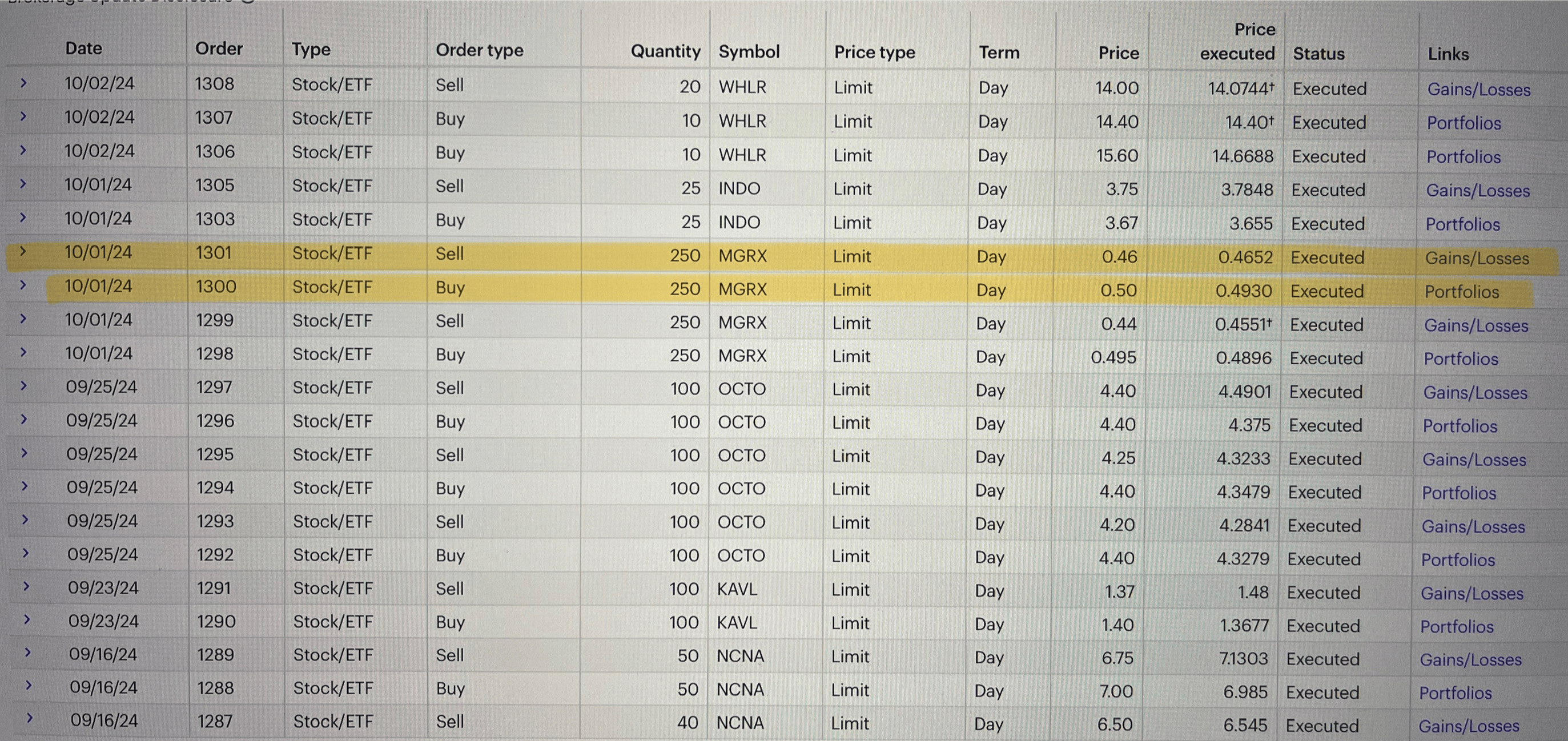 Entry date Oct 1, 2024: Bought 250 shares of MGRX for $0.4930. True penny oracle signal play, morning re-buy when it hit oracle signal again, big % gainer with news, 5.1x float rotation, 16.03M float, former spiker, day 1ner. Goal was .10¢ spike. Risk/reward was 1:2, .05¢ downside .10¢ upside. Exit date Oct 1, 2024: Sold 250 shares of MGRX for $0.4652. Didn’t hold signal again, followed rule #1, could plan better exit next time.