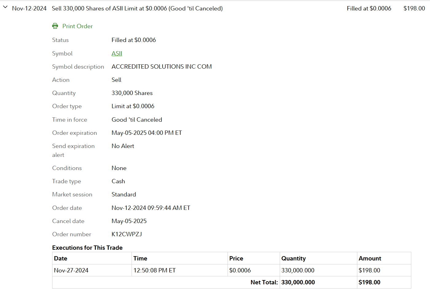 SUPER SALE STRATEGY per my 2/27/21 Profitly blogpost. Dip bought 11/4 14:06 $0.0005 54% off 10/31 $0.0011 HOD. Price hit $0.0007 11/6, 11/7, 11/8, & 11/11 but no higher. It finally dawned on me that's all it was going to be so I got on the $0.0006 Ask on 11/12 & Fidelity got me out 11/27 11:50.