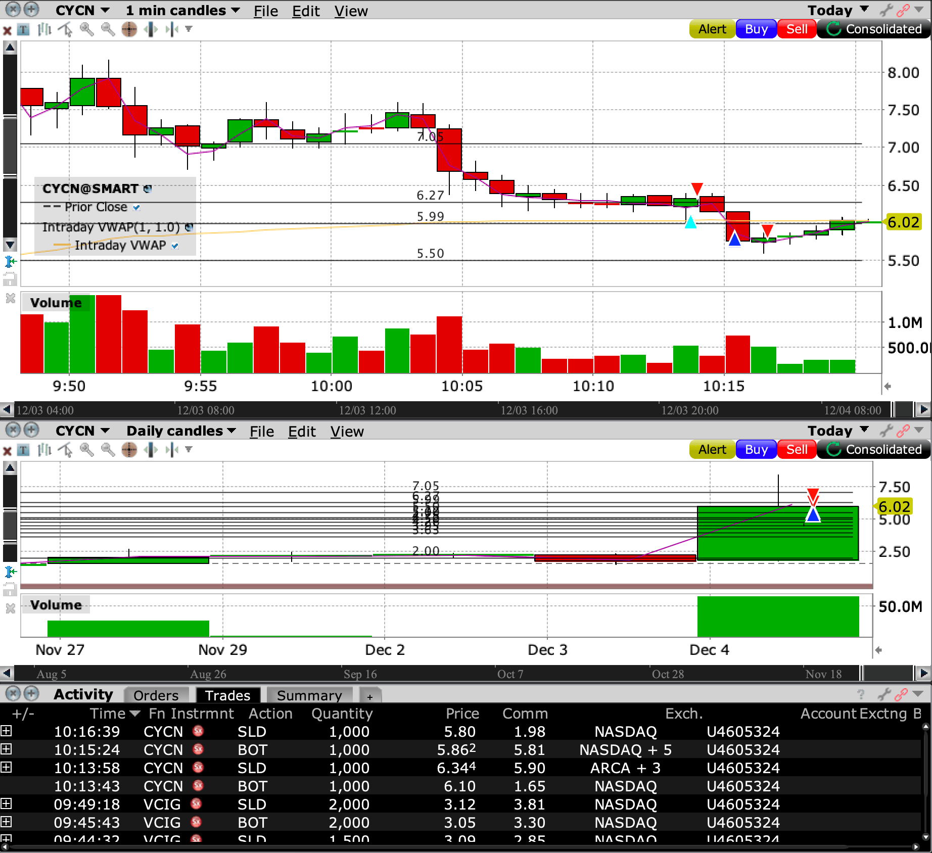 Panic Dip Buy - Sold too soon. On the right track, but sold too soon, bounce was struggling to go up, but it did uptrend up, I am just not used to sideways action, was looking for a faster action. Stock did squeeze up to 6.20, this loss should have been a 40 cents per share win today. When in doubt, get out, protected myself and sticking to my rules to cut losses quickly at 5c/share loss