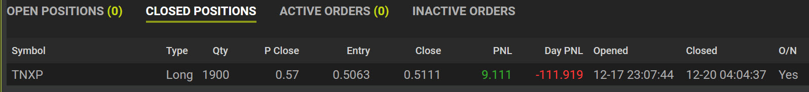 TNXP Entry comments: Bought on support Exit comments: Exit at BE