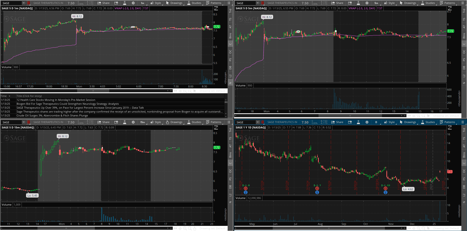 Entry comments: Bought this stock due to the pre-market open panic which dip to the low $7.30s, and somewhat positive news, and continue making new higher lows after that, and had a 20 min consolidation in the $7.70s, and base of history stocks with news and held its gains in the near highs it has potential to spike after most of retail brokers opens at 7am. Risk is to sell if it breaks the low $7.40s support level, and goal is to sell if it breaks or spikes near resistance level in the low $8s.