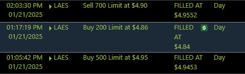 risk 10c to make 20c. 1. multiday trendlines break on the 15/30m. great volume when breaking out. pullback was 4.85 created 3days ago on Jan 15th. should have bought the pullback but i wanted to wait for a double bottom or higher low confirmation. bought 500 shares too high at 4.94, then added at the double bottom at 4.84. exit was planned around 5.10 but there was so much chop around 5.00. small gain. was up $80 unrealized at one point. so this is disappointing but it's the name of the game.