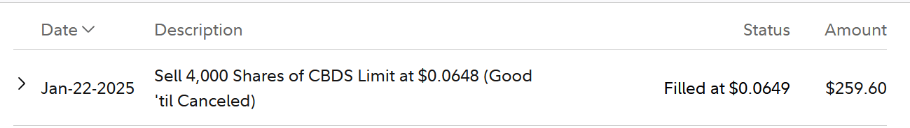 I got in this trade because it's the second strongest OTC runner since 11/25 & I've made an average 38% on 4 trades on it since 12/2 & I think I can do it again. Dip bought 1/21 8:49 29% off 8:30 $0.0675 & at strong bid support. I thought it would get back to test $0.0675 but on 1/22 I noticed the struggle at $0.065 so I got out 9:09 $0.0649.