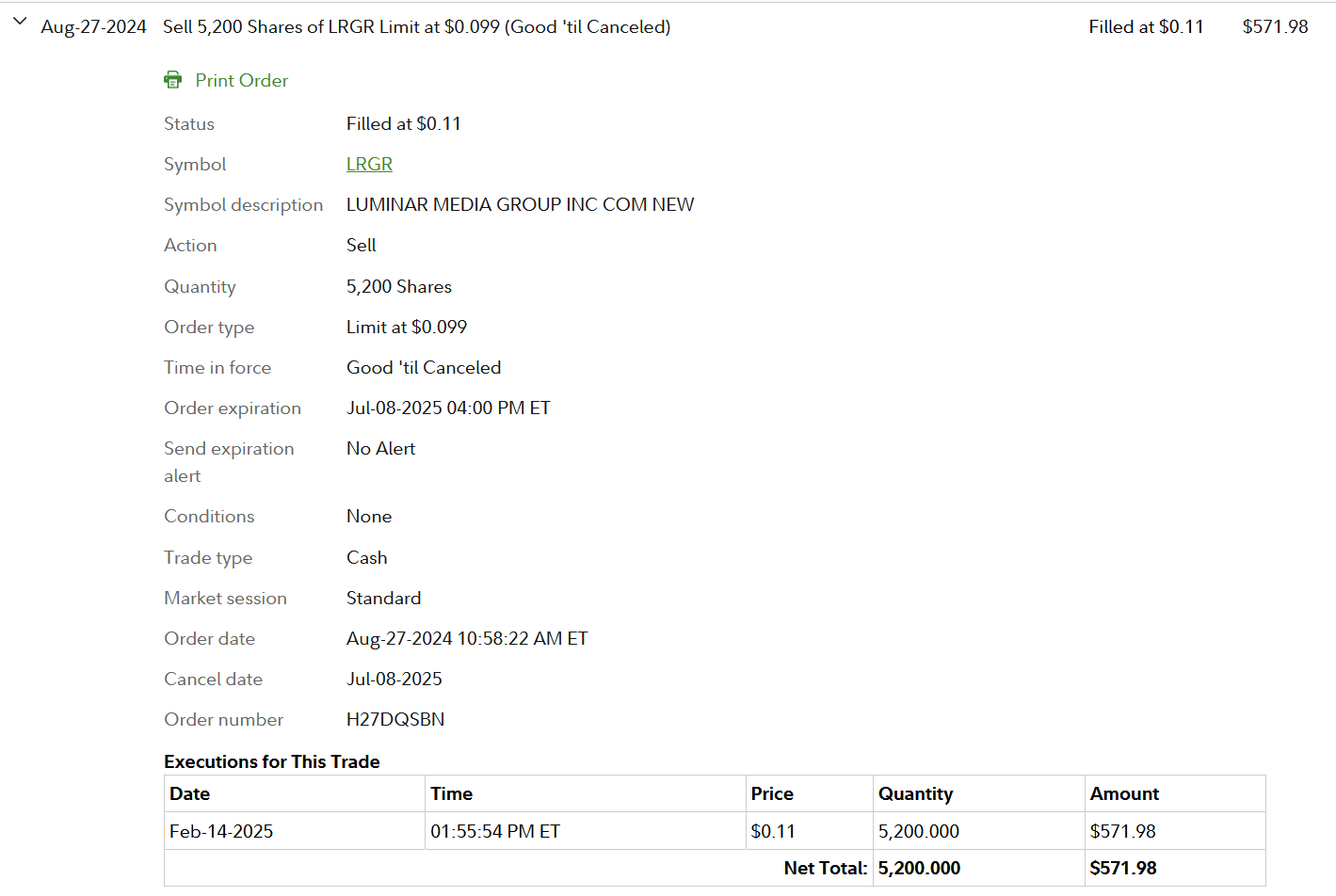 SUPER SALE STRATEGY per my 2/27/21 Profitly blogpost. Dip bought 1/26/23 $0.097 2.6k 50% off 1/25 $0.194 HOD. Price fell so added 12:33 $0.083 2.6k. Price fell to $0.01-$0.04 consolidation for many months. Once it got back over $0.05, it was on a steady march upward on low volume. On 8/27/24 I set my Limit Sell at $0.099 & Fidelity got me out on the $0.10 volume surge 12:55 $0.11. Former OTC runners can run again! $100k in Profitly trading profits!