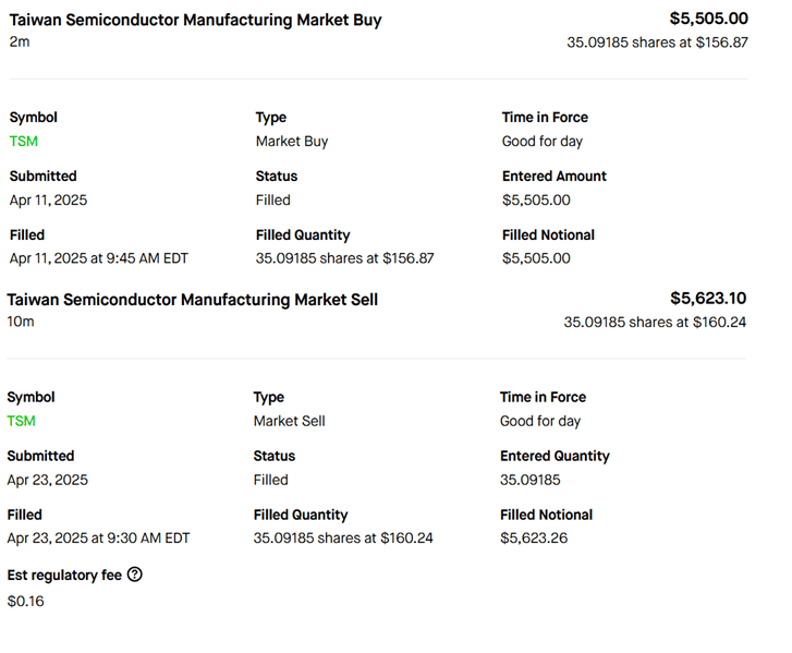 | Entry | 4/11/2025 | 156.87 |